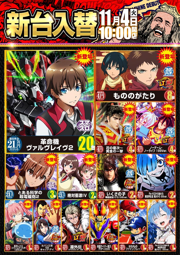 4パチ 320台 / 1.12パチ 214台 20スロ 419台 / 5.6スロ 80台 |